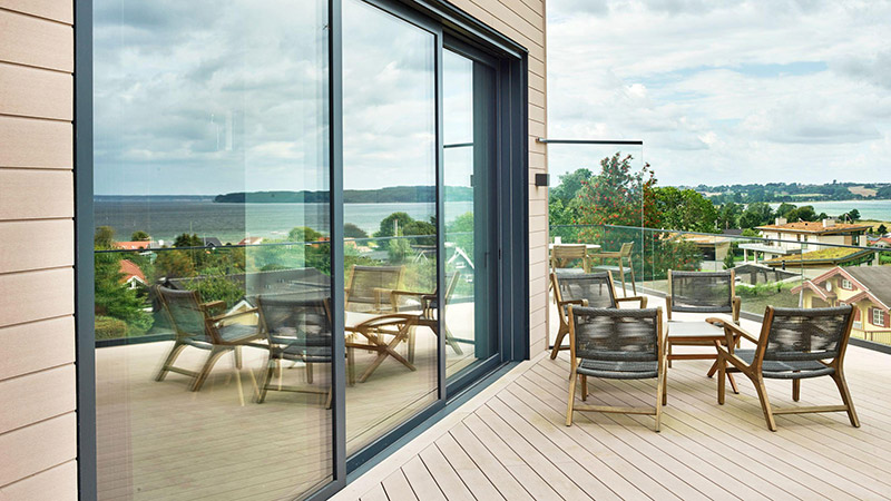 Công trình sử dụng toàn bộ hệ thống nhôm kính và lan can kính an toàn âm sàn để bắt trọn khung cảnh đẹp mắt xung quanh.